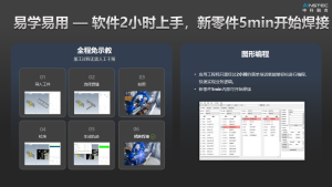 该系统易学易用,应用工程师只需经过2小时的简单培训就能够轻松进行编程,快速实现业务逻辑,新零件5min内即可开始焊接。